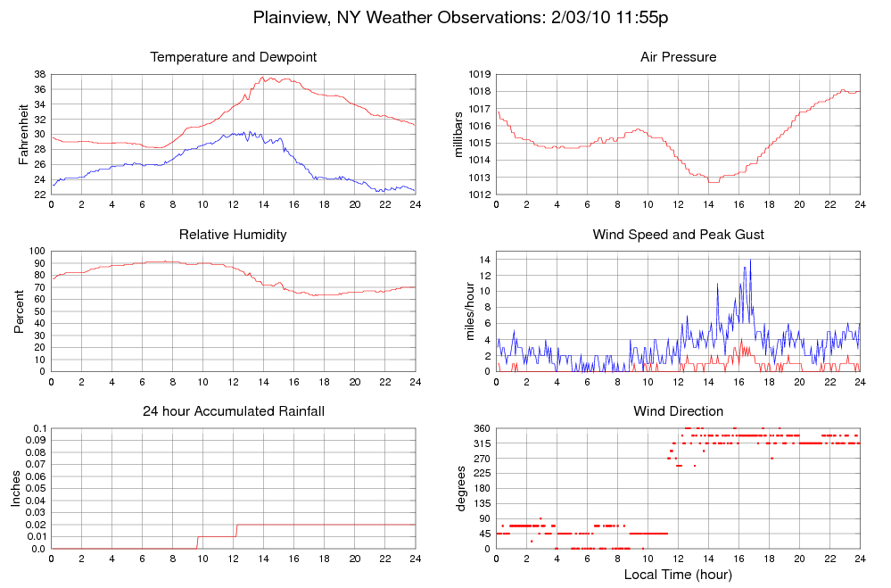 Temperature (F) 31.2 28.2 @ 06:50 37.6 @ 13:55 32.2