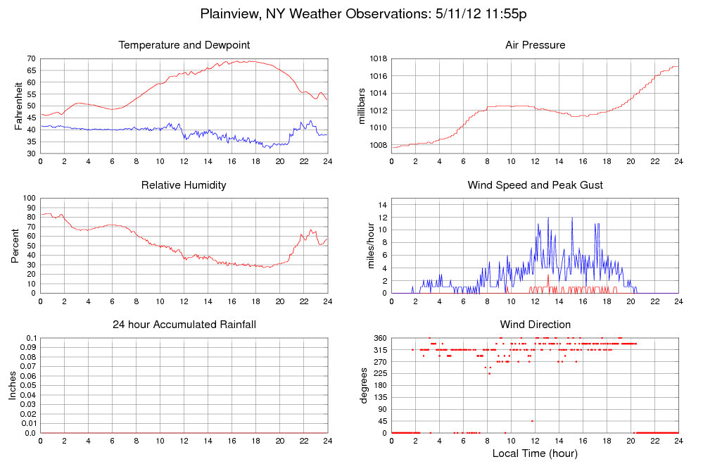 Temperature (F) 52.6 46.0 @ 00:30 68.9 @ 16:25 58.2