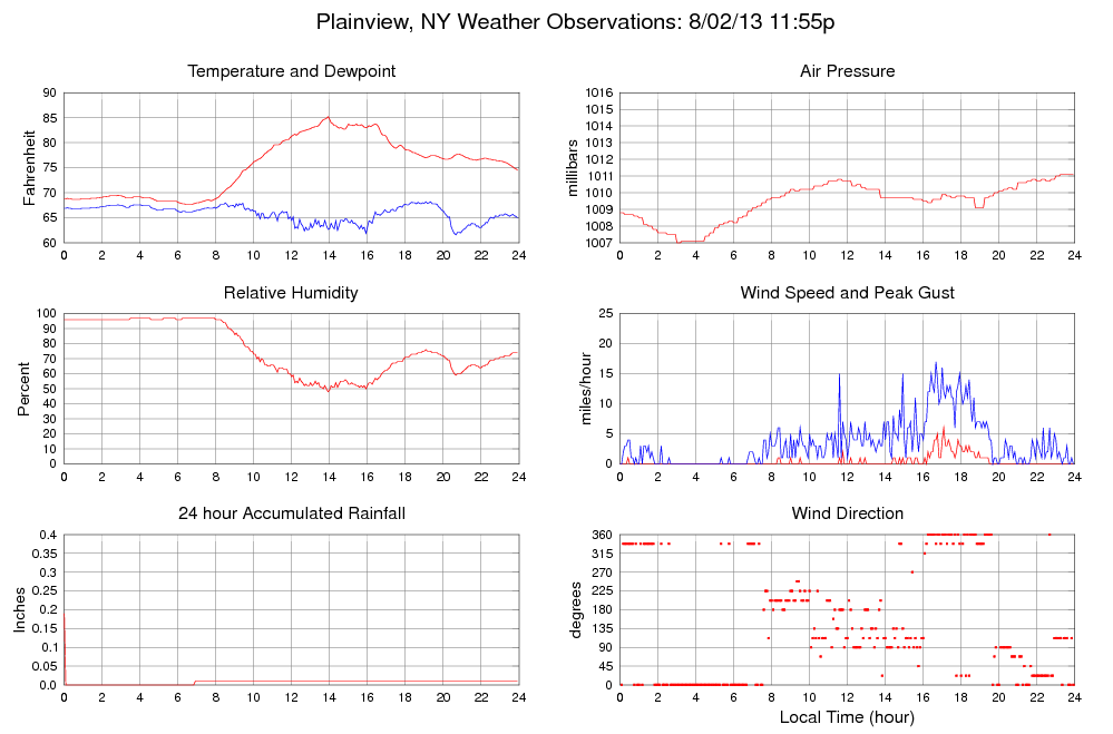 Temperature (F) 74.5 67.7 @ 06:25 85.2 @ 13:55 75.3