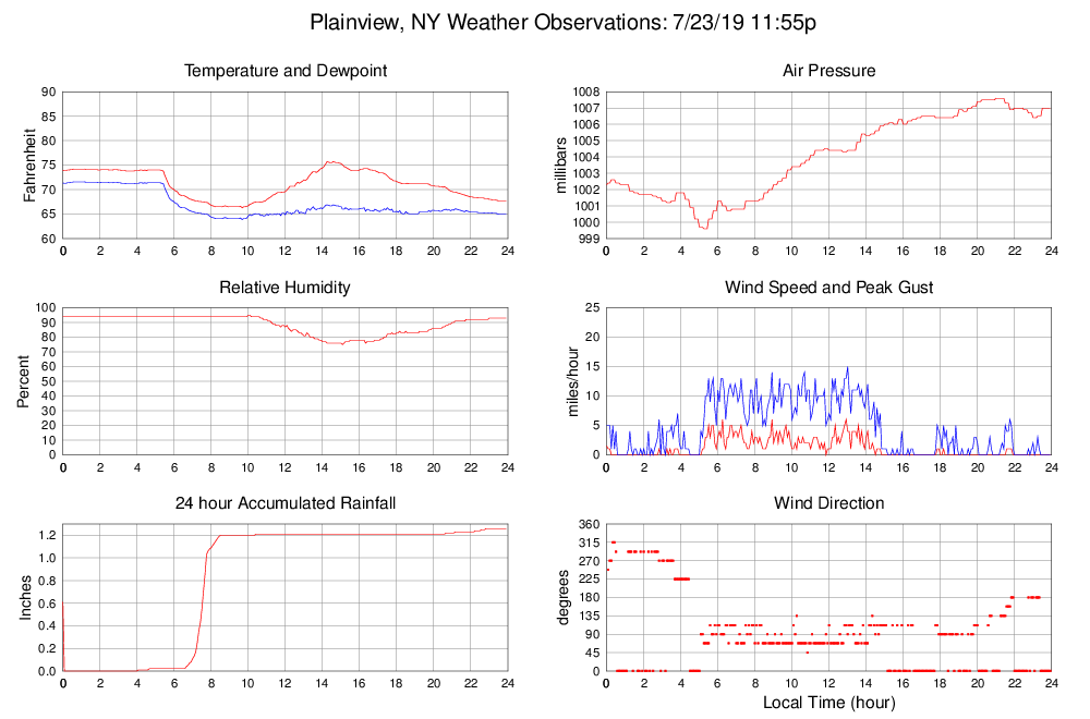 Dewpoint (F) 65.0 63.9 @ 09:40 71.6 @ 00:35 66.9