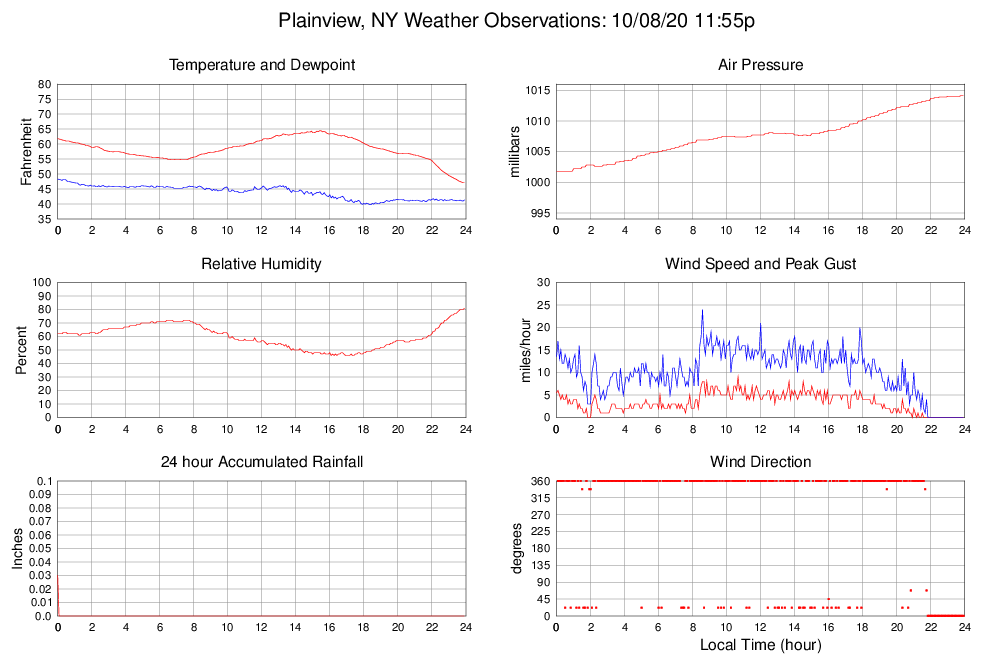 Temperature (F) 47.2 47.2 @ 23:50 64.5 @ 15:25 58.3