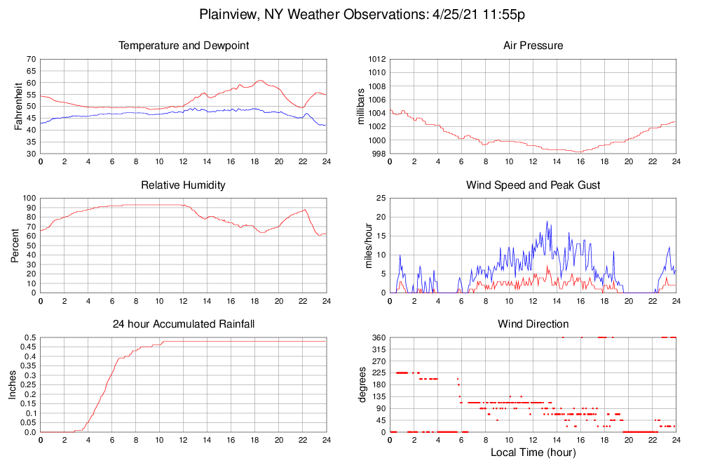 Dewpoint (F) 42.2 41.9 @ 23:50 49.3 @ 12:55 46.8