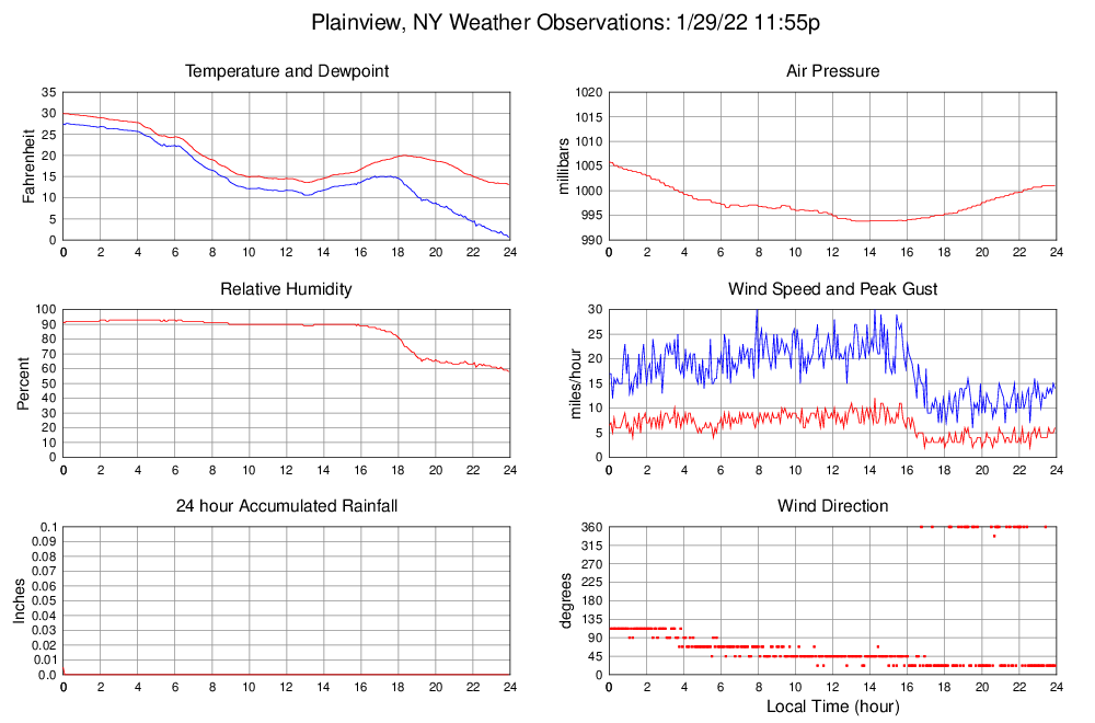 Dewpoint (F) 0.6 0.6 @ 23:55 27.6 @ 00:10 15.1