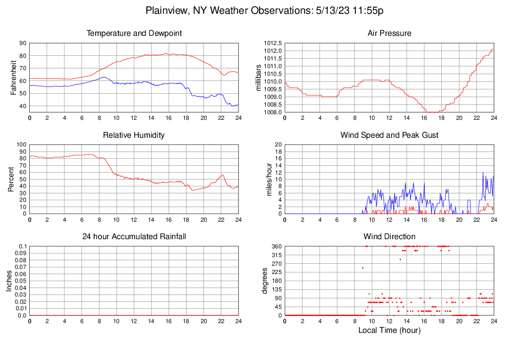 Dewpoint (F) 41.2 39.9 @ 23:15 62.9 @ 08:35 54.9