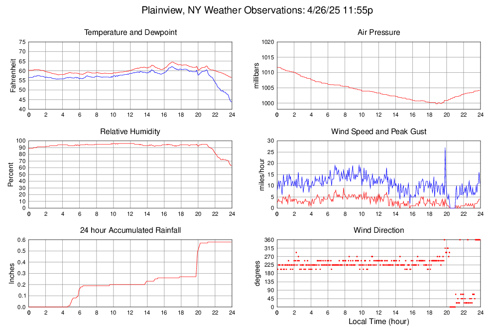 Dewpoint (F) 43.7 43.7 @ 23:55 62.2 @ 16:55 57.3