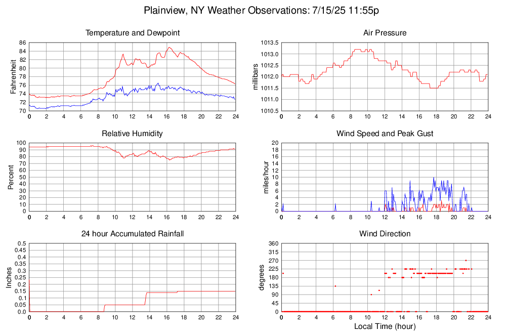 Dewpoint (F) 72.7 70.5 @ 01:00 76.5 @ 15:00 73.3