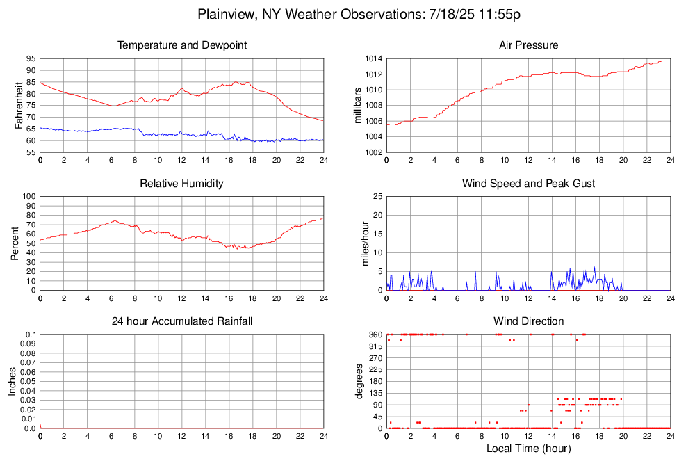 Dewpoint (F) 60.5 59.4 @ 19:15 65.4 @ 00:05 62.5