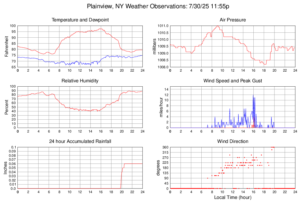 Temperature (F) 79.4 76.0 @ 05:00 97.5 @ 15:45 85.7