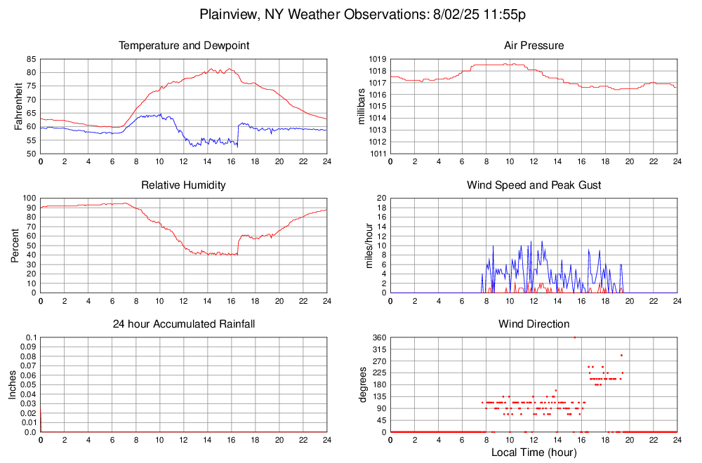 Dewpoint (F) 58.8 52.6 @ 16:30 64.7 @ 10:05 58.7