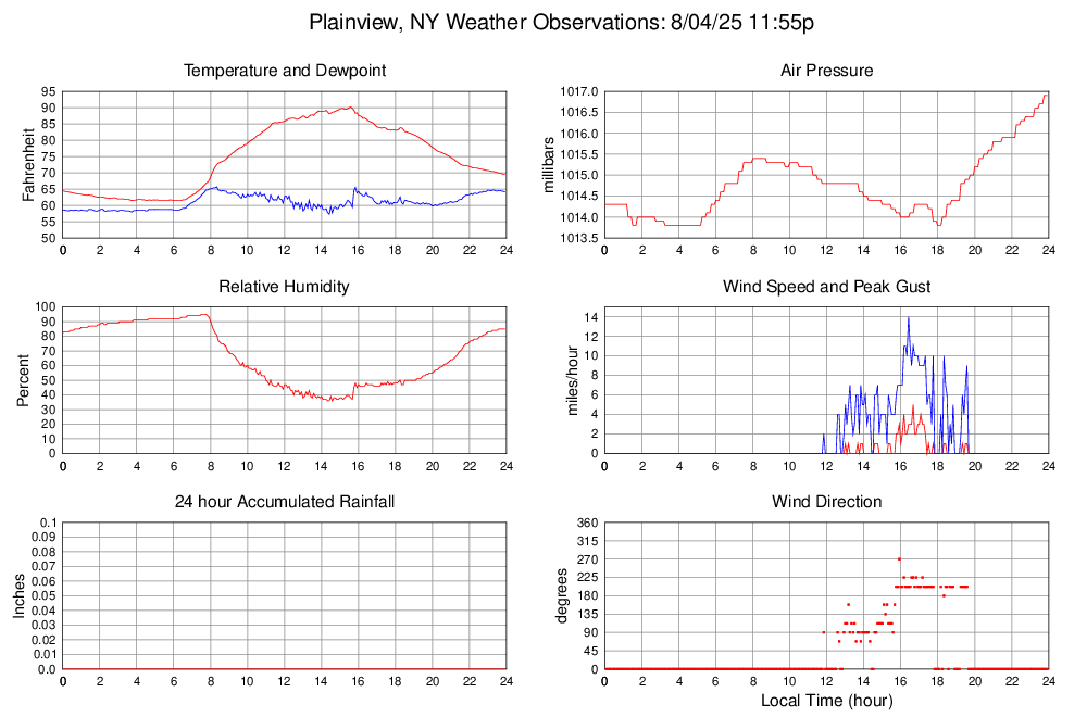 Dewpoint (F) 64.2 57.3 @ 14:25 65.7 @ 08:20 61.0