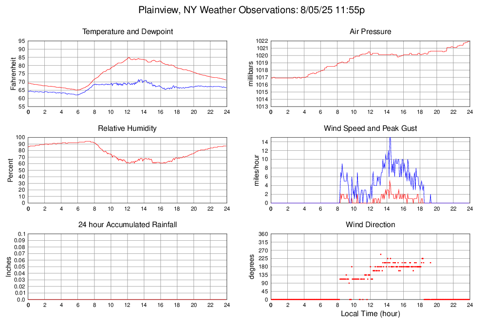 Dewpoint (F) 66.5 62.1 @ 05:45 71.4 @ 13:20 66.5