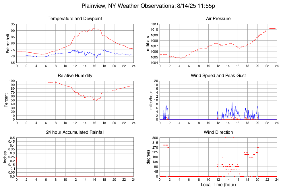 Dewpoint (F) 70.9 68.7 @ 16:25 75.1 @ 11:55 71.8