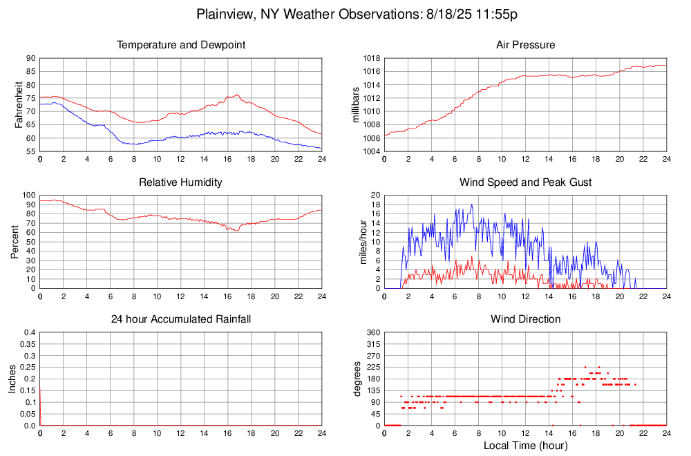 Dewpoint (F) 56.2 56.2 @ 23:55 73.3 @ 01:10 62.0