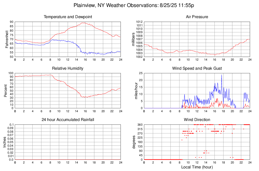 Dewpoint (F) 56.0 52.7 @ 20:15 69.6 @ 08:40 61.4