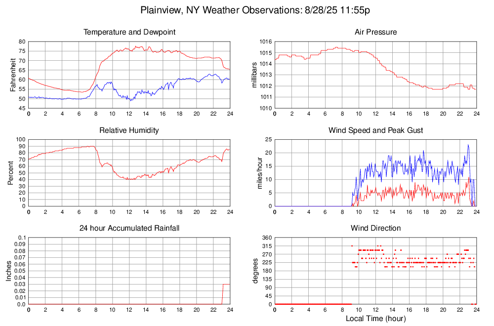 Dewpoint (F) 60.2 48.9 @ 12:10 62.9 @ 21:30 54.7