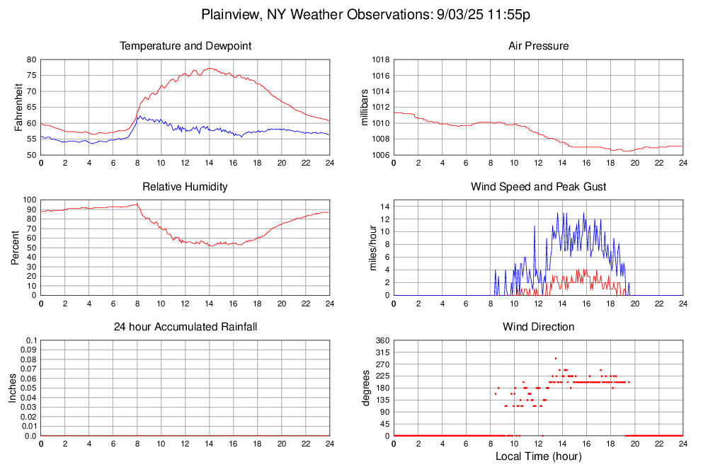 Dewpoint (F) 56.3 53.5 @ 04:20 62.3 @ 08:15 57.0