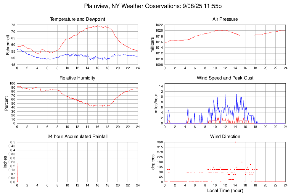 Temperature (F) 55.5 53.0 @ 04:25 74.4 @ 16:00 62.9