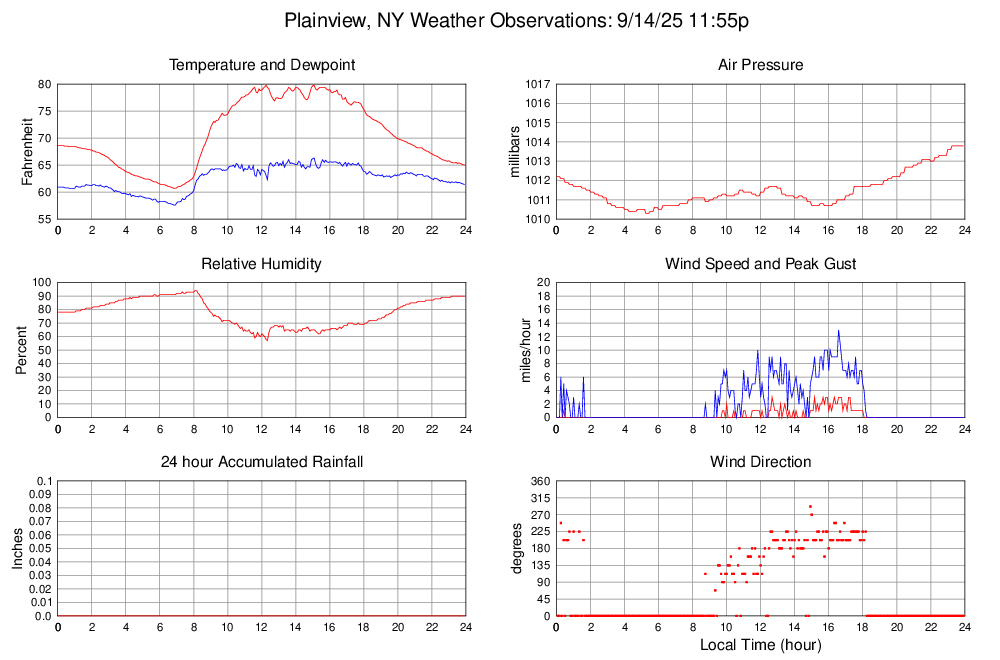 Temperature (F) 65.0 60.7 @ 06:50 79.8 @ 12:15 70.7