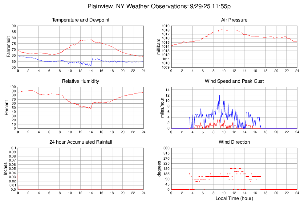 Temperature (F) 64.1 64.1 @ 23:55 78.3 @ 13:15 70.1