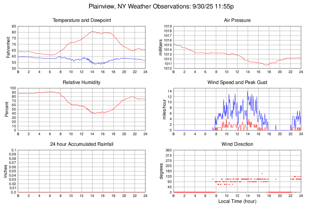 Temperature (F) 65.6 61.0 @ 06:15 80.8 @ 14:05 69.4
