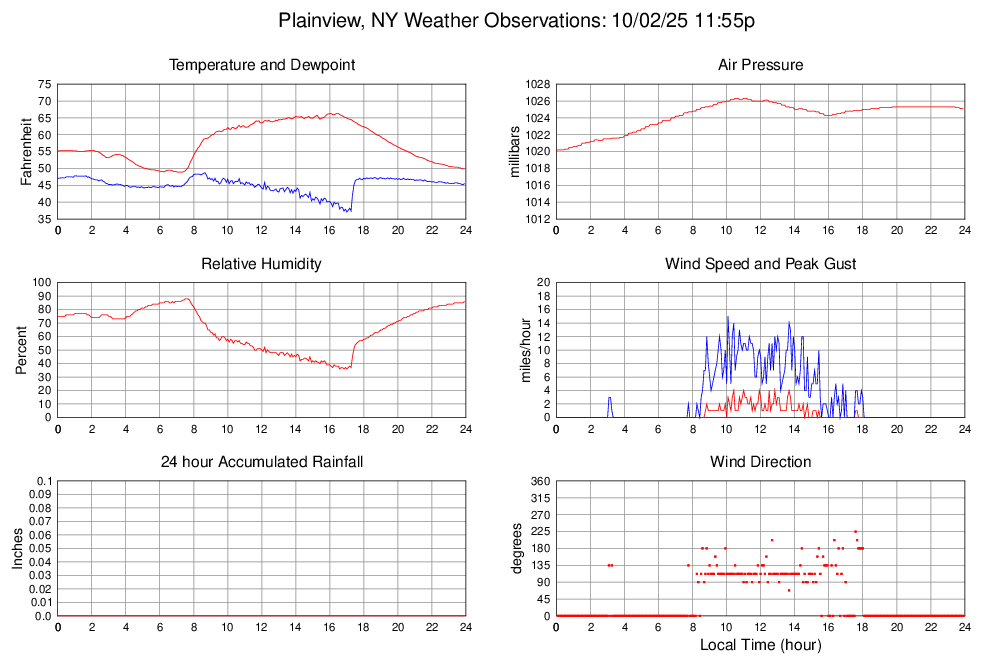 Temperature (F) 49.9 48.9 @ 07:05 66.3 @ 16:05 57.5