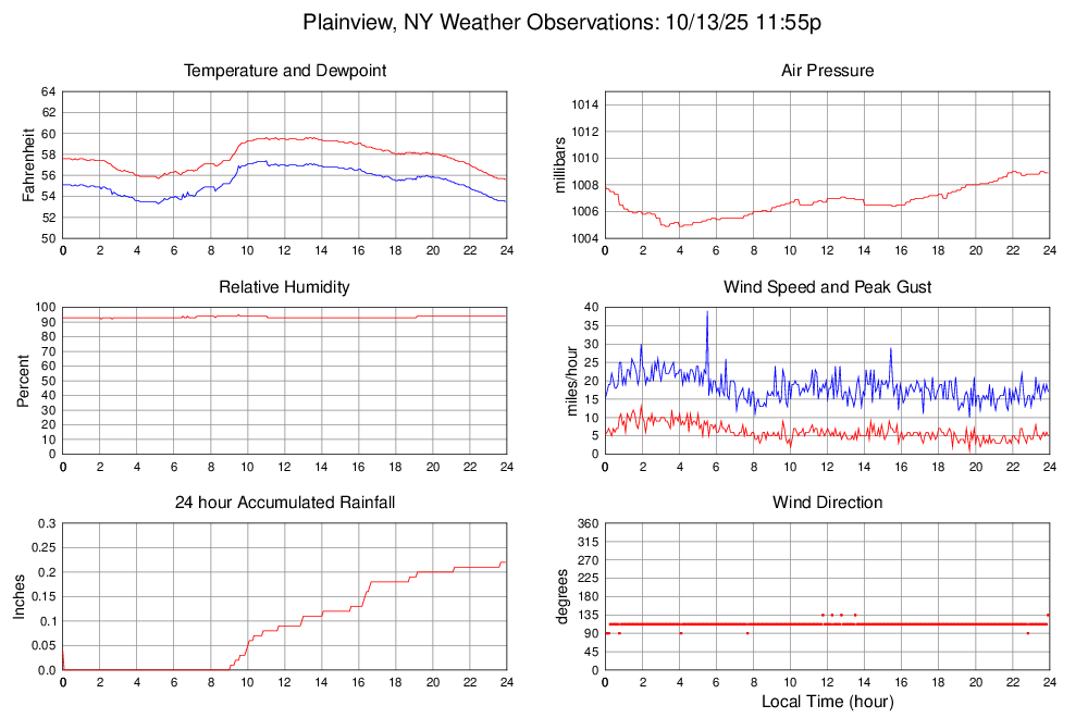 Dewpoint (F) 53.5 53.3 @ 05:10 57.4 @ 11:00 55.4