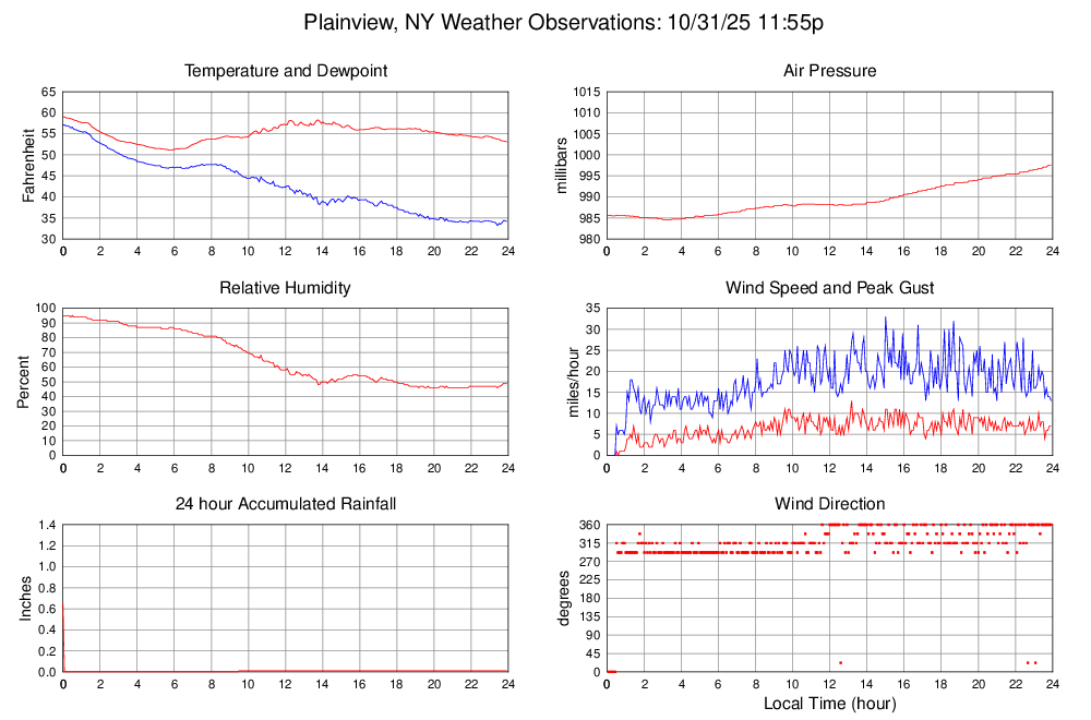 Dewpoint (F) 34.2 33.2 @ 23:25 57.1 @ 00:05 42.8