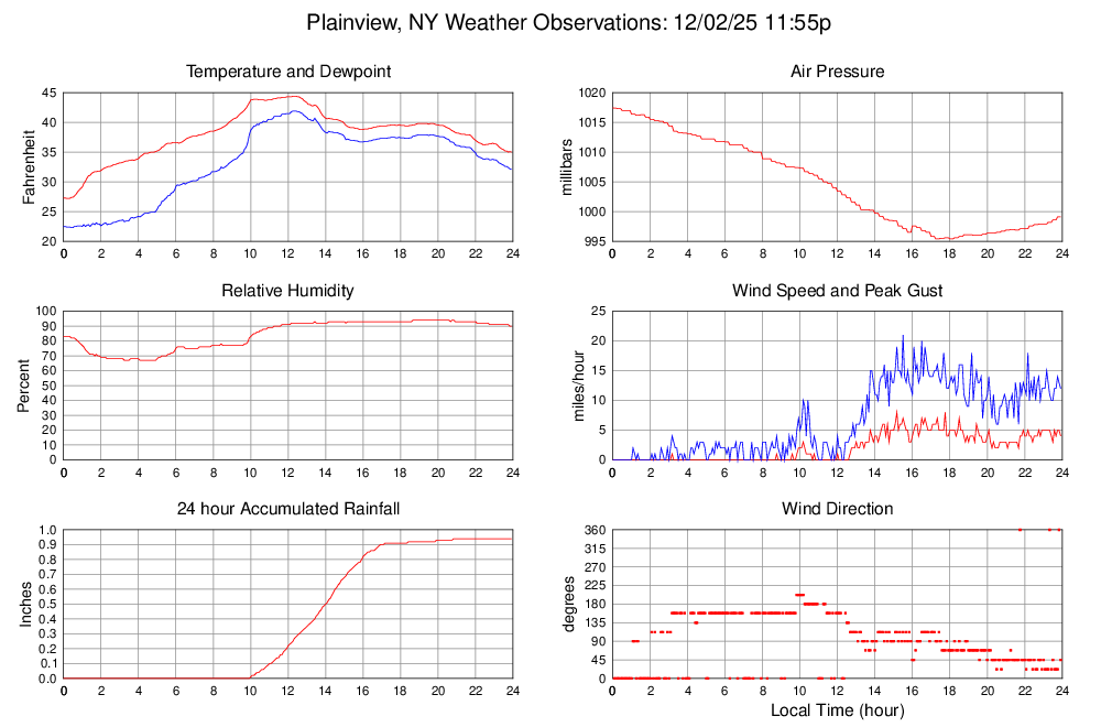 Temperature (F) 35.0 27.2 @ 00:10 44.4 @ 12:15 38.1
