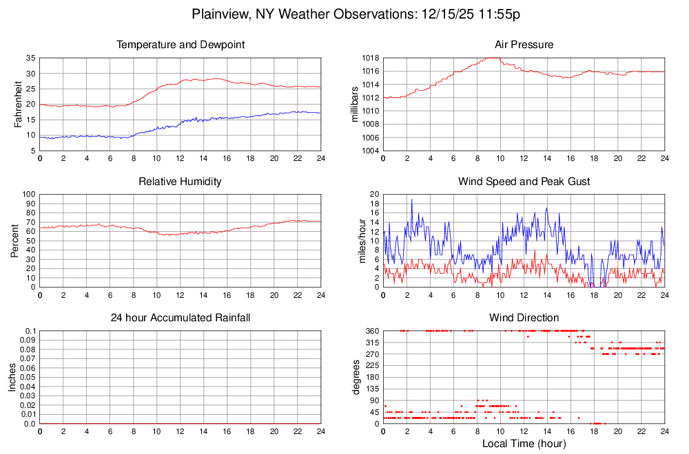 Temperature (F) 25.5 19.1 @ 05:00 28.3 @ 14:55 24.0