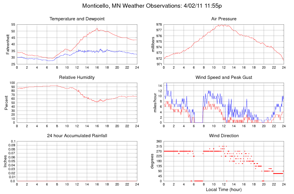 Dewpoint (F) 32.3 27.5 @ 06:15 36.5 @ 16:45 32.2