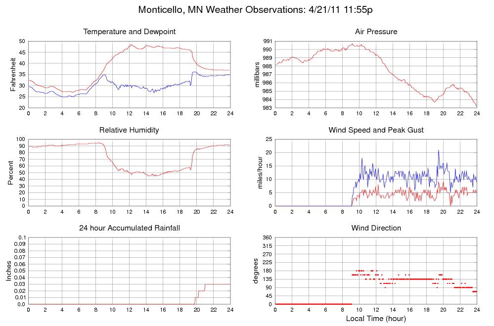 Dewpoint (F) 34.8 24.9 @ 04:00 36.2 @ 19:45 29.9