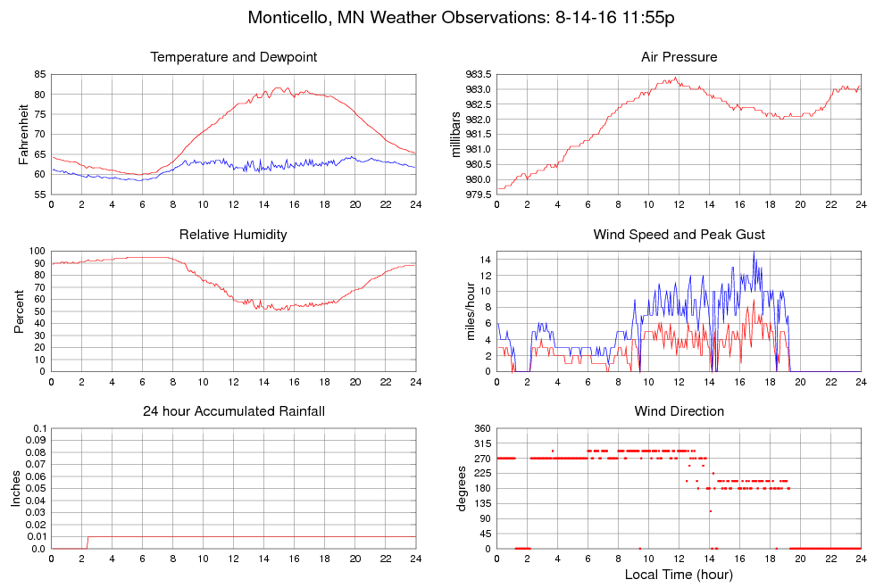 Wind Speed (mph) 0.0 0.0 @ 01:00 9.0 @ 16:55 2.4